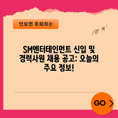 SM엔터테인먼트 신입 및 경력사원 채용 공고: 오늘의 주요 정보!